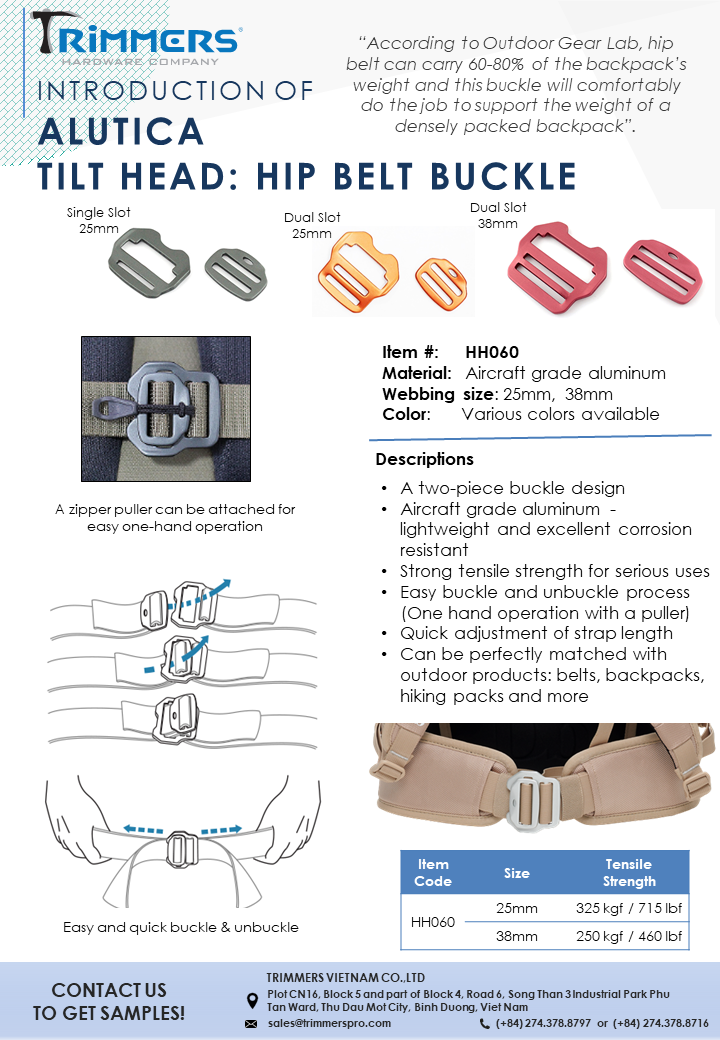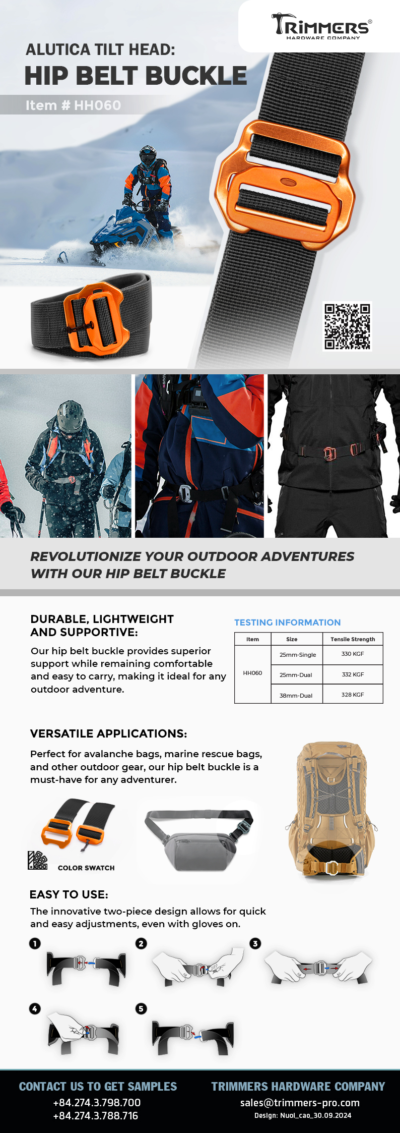Korean About usCompanyCompany IntroductionCompany ProfileCILocationBusinessBusiness InformationOffice & FactoryCore ValuesOur CustomersStrengthsQuality ControlMaterialDesign & DevelopmentNon-stop Production ProcessIntegrated Structural DesignNewsCompany NewsOversea ShowTrimmers Booth Position OROutdoor Friedrichshafen, DEOutdoor Winter Market 2016Outdoor Friedrichshafen, DEOutdoor Summer Market 2016Trimmers Booth Position OROutdoor Friedrichshafen, DEOutdoor Retailer + Snow ShowISPO Munich Show 2018ISPO Munich Show 20192019 Outdoor Retailer SnowISPO Munich Show Jun,2019Company ActivitiesProduct NewsRetractable HandleBottom Compartment SystemsWheelZipper PullerMetal ComponentPlasticFrameBlogTipsMachineryProductsTravel & GearBottom CompartmentXAD Bottom CompartmentCaliber SeriesEdge Bottom CompartmentMalibu SeriesLocomo SeriesAkita SeriesSuperlite seriesHybrid seriesSantana SeriesHybrid SeriesHJHASDAAll In One SystemsRecessed Spinner Wheel SeriesSpaceShip seriesFeatherLite seriesRetractable HandleAkitaLocomoCruiser seriesCaliber seriesHybrid seriesSpeedLite seriesSuperLite seriesLooperColeIbiza seriesMalibu seriesIce Breaker seriesSolsticeWheelMalibu SeriesAkita SeriesSantana Spinner WheelSpinner Wheel seriesLocomo WheelCruiser seriesCaliber seriesHybrid seriesSuperLite seriesSpeedLite seriesIceBreaker seriesBow TypeLoop seriesTradi seriesSolstice SeriesPlastic ComponentEnd Cap BuckleLadderLockCordLockWebbing TiePower StrapViper Power StrapCamlockPivot HookLoopTriglideD-RingFoot and RailTop / Side HandleProtector & Skid PlateFoot & RailTop HandleLogoLogo PlateSkid Plate & ProtectorProtectorSkid PlateTactical & SafetySide-release BuckleT8_LayerT9_ShieldBags & ApparelsMetal ComponentTension HookShorty Tension HookClip HookSnap HookD-RingTension RingTriglideTension LockToggleLoopWeb ButtonContinental DividerTrekking HolderSternum SliderPull TapCam Tension HookCamlockSR BuckleTent StakeAluminum RulerMetal End TapStructural FrameCarabinerCarabinerCarabinerT3T3 PROBeltBeltZipper PullerZipper PullerMetAstics™AluticaPlasticWeb HandleCamping & OverlandCommute CarrierSnow ShoesChairContactContact InfoHEADGERMANYITALIAKOREAJAPANUKISRAEL About usCompanyCompany IntroductionCompany ProfileCILocationBusinessBusiness InformationOffice & FactoryCore ValuesOur CustomersStrengthsQuality ControlMaterialDesign & DevelopmentNon-stop Production ProcessIntegrated Structural DesignNewsCompany NewsOversea ShowTrimmers Booth Position OROutdoor Friedrichshafen, DEOutdoor Winter Market 2016Outdoor Friedrichshafen, DEOutdoor Summer Market 2016Trimmers Booth Position OROutdoor Friedrichshafen, DEOutdoor Retailer + Snow ShowISPO Munich Show 2018ISPO Munich Show 20192019 Outdoor Retailer SnowISPO Munich Show Jun,2019Company ActivitiesProduct NewsRetractable HandleBottom Compartment SystemsWheelZipper PullerMetal ComponentPlasticFrameBlogTipsMachineryProductsTravel & GearBottom CompartmentXAD Bottom CompartmentCaliber SeriesEdge Bottom CompartmentMalibu SeriesLocomo SeriesAkita SeriesSuperlite seriesHybrid seriesSantana SeriesHybrid SeriesHJHASDAAll In One SystemsRecessed Spinner Wheel SeriesSpaceShip seriesFeatherLite seriesRetractable HandleAkitaLocomoCruiser seriesCaliber seriesHybrid seriesSpeedLite seriesSuperLite seriesLooperColeIbiza seriesMalibu seriesIce Breaker seriesSolsticeWheelMalibu SeriesAkita SeriesSantana Spinner WheelSpinner Wheel seriesLocomo WheelCruiser seriesCaliber seriesHybrid seriesSuperLite seriesSpeedLite seriesIceBreaker seriesBow TypeLoop seriesTradi seriesSolstice SeriesPlastic ComponentEnd Cap BuckleLadderLockCordLockWebbing TiePower StrapViper Power StrapCamlockPivot HookLoopTriglideD-RingFoot and RailTop / Side HandleProtector & Skid PlateFoot & RailTop HandleLogoLogo PlateSkid Plate & ProtectorProtectorSkid PlateTactical & SafetySide-release BuckleT8_LayerT9_ShieldBags & ApparelsMetal ComponentTension HookShorty Tension HookClip HookSnap HookD-RingTension RingTriglideTension LockToggleLoopWeb ButtonContinental DividerTrekking HolderSternum SliderPull TapCam Tension HookCamlockSR BuckleTent StakeAluminum RulerMetal End TapStructural FrameCarabinerCarabinerCarabinerT3T3 PROBeltBeltZipper PullerZipper PullerMetAstics™AluticaPlasticWeb HandleCamping & OverlandCommute CarrierSnow ShoesChairContactContact InfoHEADGERMANYITALIAKOREAJAPANUKISRAEL Company News Oversea ShowTrimmers Booth Position OROutdoor Friedrichshafen, DEOutdoor Winter Market 2016Outdoor Friedrichshafen, DEOutdoor Summer Market 2016Trimmers Booth Position OROutdoor Friedrichshafen, DEOutdoor Retailer + Snow ShowISPO Munich Show 2018ISPO Munich Show 20192019 Outdoor Retailer SnowISPO Munich Show Jun,2019Company Activities Product News Retractable HandleBottom Compartment SystemsWheelZipper PullerMetal ComponentPlasticFrame Blog TipsMachinery Alutica Tilt Head: Hip Belt Buckle PDF Download Other News Alutica Tilt Head: Bottle Opener Tension Lock (HH164) & Bottle Opener D-Ring (HH146) Item#: HH164 & HH146 T3 PRO_Loop Item#: HH235 T3 PRO D-ring (HH226) & T3 PRO Double D-ring (HH227) Item#: HH226 & HH227 T3 PRO (Shorty) Tension Hook Item#: HH228 & HH229 T3 PRO_Triglide Item#: HH321 T3 PRO_Webbing Toggle Item#: HH244 e-Catalogue HARDWARE OF TRAVEL & CAMPING 2024 HARDWARE OF BAGS & APPARELS 2024 METAL & PLASTIC COMPONENT T3 PRO_METAL COMPONENT (*) Required Information (*) Required Information (*) Required Information Download Product Highlights Metal / Plastic / Zip-pull P.7 Metal / Plastic / Zip-pull P.6 Metal / Plastic / Zip-pull P.5 Metal / Plastic / Zip-pull P.4 Metal / Plastic / Zip-pull P.3 Metal / Plastic / Zip-pull P.2 Metal / Plastic / Zip-pull P.1 Handles / Wheels / Hard shell P.3 Handles / Wheels / Hard shell P.2 Handles / Wheels / Hard shell P.1 Frame Flyers