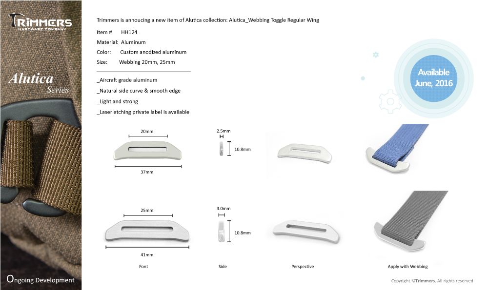 Korean About usCompanyCompany IntroductionCompany ProfileCILocationBusinessBusiness InformationOffice & FactoryCore ValuesOur CustomersStrengthsQuality ControlMaterialDesign & DevelopmentNon-stop Production ProcessIntegrated Structural DesignNewsCompany NewsOversea ShowTrimmers Booth Position OROutdoor Friedrichshafen, DEOutdoor Winter Market 2016Outdoor Friedrichshafen, DEOutdoor Summer Market 2016Trimmers Booth Position OROutdoor Friedrichshafen, DEOutdoor Retailer + Snow ShowISPO Munich Show 2018ISPO Munich Show 20192019 Outdoor Retailer SnowISPO Munich Show Jun,2019Company ActivitiesProduct NewsRetractable HandleBottom Compartment SystemsWheelZipper PullerMetal ComponentPlasticFrameBlogTipsMachineryProductsTravel & GearBottom CompartmentXAD Bottom CompartmentCaliber SeriesEdge Bottom CompartmentMalibu SeriesLocomo SeriesAkita SeriesSuperlite seriesHybrid seriesSantana SeriesHybrid SeriesHJHASDAAll In One SystemsRecessed Spinner Wheel SeriesSpaceShip seriesFeatherLite seriesRetractable HandleAkitaLocomoCruiser seriesCaliber seriesHybrid seriesSpeedLite seriesSuperLite seriesLooperColeIbiza seriesMalibu seriesIce Breaker seriesSolsticeWheelMalibu SeriesAkita SeriesSantana Spinner WheelSpinner Wheel seriesLocomo WheelCruiser seriesCaliber seriesHybrid seriesSuperLite seriesSpeedLite seriesIceBreaker seriesBow TypeLoop seriesTradi seriesSolstice SeriesPlastic ComponentEnd Cap BuckleLadderLockCordLockWebbing TiePower StrapViper Power StrapCamlockPivot HookLoopTriglideD-RingFoot and RailTop / Side HandleProtector & Skid PlateFoot & RailTop HandleLogoLogo PlateSkid Plate & ProtectorProtectorSkid PlateTactical & SafetySide-release BuckleT8_LayerT9_ShieldBags & ApparelsMetal ComponentTension HookShorty Tension HookClip HookSnap HookD-RingTension RingTriglideTension LockToggleLoopWeb ButtonContinental DividerTrekking HolderSternum SliderPull TapCam Tension HookCamlockSR BuckleTent StakeAluminum RulerMetal End TapStructural FrameCarabinerCarabinerCarabinerT3T3 PROBeltBeltZipper PullerZipper PullerMetAstics™AluticaPlasticWeb HandleCamping & OverlandCommute CarrierSnow ShoesChairContactContact InfoHEADGERMANYITALIAKOREAJAPANUKISRAEL About usCompanyCompany IntroductionCompany ProfileCILocationBusinessBusiness InformationOffice & FactoryCore ValuesOur CustomersStrengthsQuality ControlMaterialDesign & DevelopmentNon-stop Production ProcessIntegrated Structural DesignNewsCompany NewsOversea ShowTrimmers Booth Position OROutdoor Friedrichshafen, DEOutdoor Winter Market 2016Outdoor Friedrichshafen, DEOutdoor Summer Market 2016Trimmers Booth Position OROutdoor Friedrichshafen, DEOutdoor Retailer + Snow ShowISPO Munich Show 2018ISPO Munich Show 20192019 Outdoor Retailer SnowISPO Munich Show Jun,2019Company ActivitiesProduct NewsRetractable HandleBottom Compartment SystemsWheelZipper PullerMetal ComponentPlasticFrameBlogTipsMachineryProductsTravel & GearBottom CompartmentXAD Bottom CompartmentCaliber SeriesEdge Bottom CompartmentMalibu SeriesLocomo SeriesAkita SeriesSuperlite seriesHybrid seriesSantana SeriesHybrid SeriesHJHASDAAll In One SystemsRecessed Spinner Wheel SeriesSpaceShip seriesFeatherLite seriesRetractable HandleAkitaLocomoCruiser seriesCaliber seriesHybrid seriesSpeedLite seriesSuperLite seriesLooperColeIbiza seriesMalibu seriesIce Breaker seriesSolsticeWheelMalibu SeriesAkita SeriesSantana Spinner WheelSpinner Wheel seriesLocomo WheelCruiser seriesCaliber seriesHybrid seriesSuperLite seriesSpeedLite seriesIceBreaker seriesBow TypeLoop seriesTradi seriesSolstice SeriesPlastic ComponentEnd Cap BuckleLadderLockCordLockWebbing TiePower StrapViper Power StrapCamlockPivot HookLoopTriglideD-RingFoot and RailTop / Side HandleProtector & Skid PlateFoot & RailTop HandleLogoLogo PlateSkid Plate & ProtectorProtectorSkid PlateTactical & SafetySide-release BuckleT8_LayerT9_ShieldBags & ApparelsMetal ComponentTension HookShorty Tension HookClip HookSnap HookD-RingTension RingTriglideTension LockToggleLoopWeb ButtonContinental DividerTrekking HolderSternum SliderPull TapCam Tension HookCamlockSR BuckleTent StakeAluminum RulerMetal End TapStructural FrameCarabinerCarabinerCarabinerT3T3 PROBeltBeltZipper PullerZipper PullerMetAstics™AluticaPlasticWeb HandleCamping & OverlandCommute CarrierSnow ShoesChairContactContact InfoHEADGERMANYITALIAKOREAJAPANUKISRAEL Company News Oversea ShowTrimmers Booth Position OROutdoor Friedrichshafen, DEOutdoor Winter Market 2016Outdoor Friedrichshafen, DEOutdoor Summer Market 2016Trimmers Booth Position OROutdoor Friedrichshafen, DEOutdoor Retailer + Snow ShowISPO Munich Show 2018ISPO Munich Show 20192019 Outdoor Retailer SnowISPO Munich Show Jun,2019Company Activities Product News Retractable HandleBottom Compartment SystemsWheelZipper PullerMetal ComponentPlasticFrame Blog TipsMachinery Alutica_Webbing Toggle PDF Download Other News Alutica Tilt Head: Bottle Opener Tension Lock (HH164) & Bottle Opener D-Ring (HH146) Item#: HH164 & HH146 T3 PRO_Loop Item#: HH235 T3 PRO D-ring (HH226) & T3 PRO Double D-ring (HH227) Item#: HH226 & HH227 T3 PRO (Shorty) Tension Hook Item#: HH228 & HH229 T3 PRO_Triglide Item#: HH321 T3 PRO_Webbing Toggle Item#: HH244 e-Catalogue HARDWARE OF TRAVEL & CAMPING 2024 HARDWARE OF BAGS & APPARELS 2024 METAL & PLASTIC COMPONENT T3 PRO_METAL COMPONENT (*) Required Information (*) Required Information (*) Required Information Download Product Highlights Metal / Plastic / Zip-pull P.7 Metal / Plastic / Zip-pull P.6 Metal / Plastic / Zip-pull P.5 Metal / Plastic / Zip-pull P.4 Metal / Plastic / Zip-pull P.3 Metal / Plastic / Zip-pull P.2 Metal / Plastic / Zip-pull P.1 Handles / Wheels / Hard shell P.3 Handles / Wheels / Hard shell P.2 Handles / Wheels / Hard shell P.1 Frame Flyers