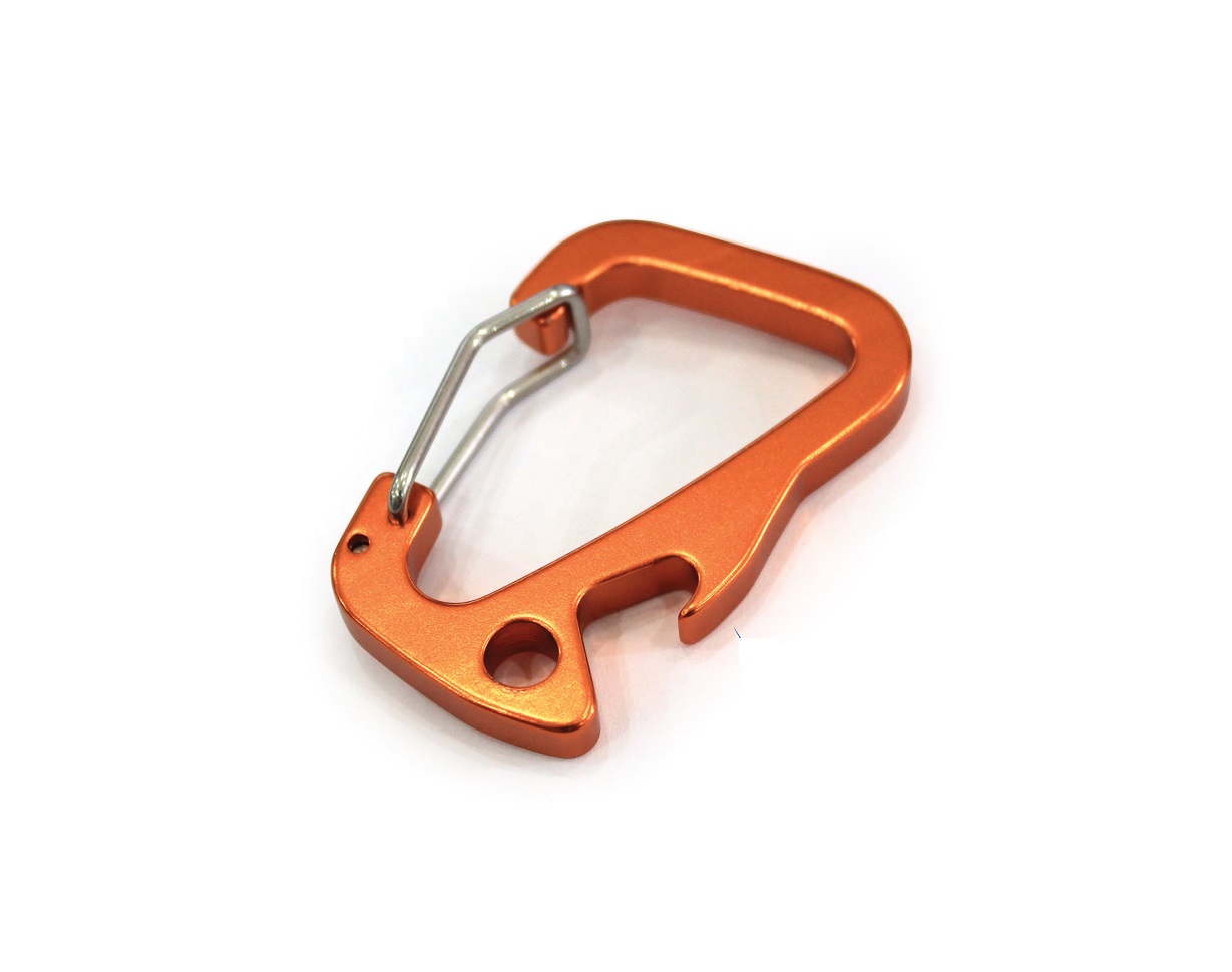 The compact and lightweight carabiner that you should have. Having the shark tail, this carabiner allows you to open any bottle when in need. Also, the key loop offers an excellent key chain clip for home, hiking, fishing, etc.