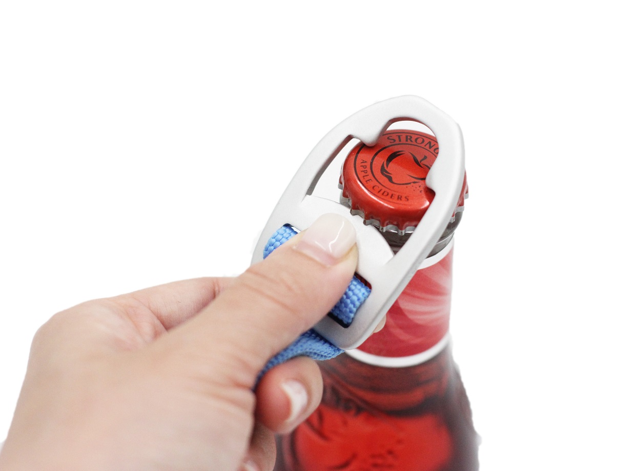 This Alutica D-ring has a hole that is large enough to fit anything from a swivel hook to a safety harness hardware and more. Obviously, there is an added feature of the bottle opening function where you can conveniently open bottles anywhere you carry these products with you!