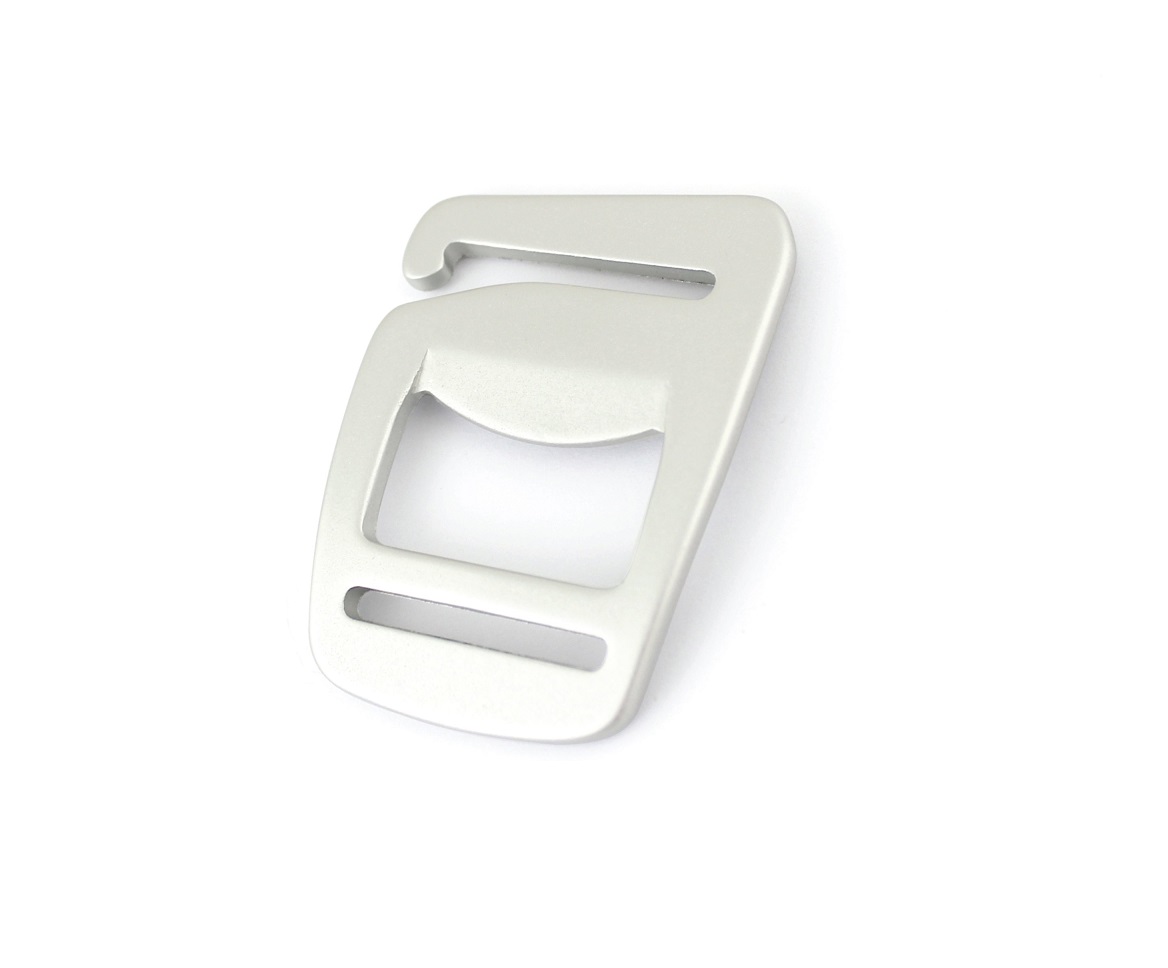 Another item in the Alutica Group. Having the same shape as the previous D-ring, this tension lock has up to 2 webbing slots and a hole that is large enough to fit anything from a swivel hook to a safety harness hardware and more.