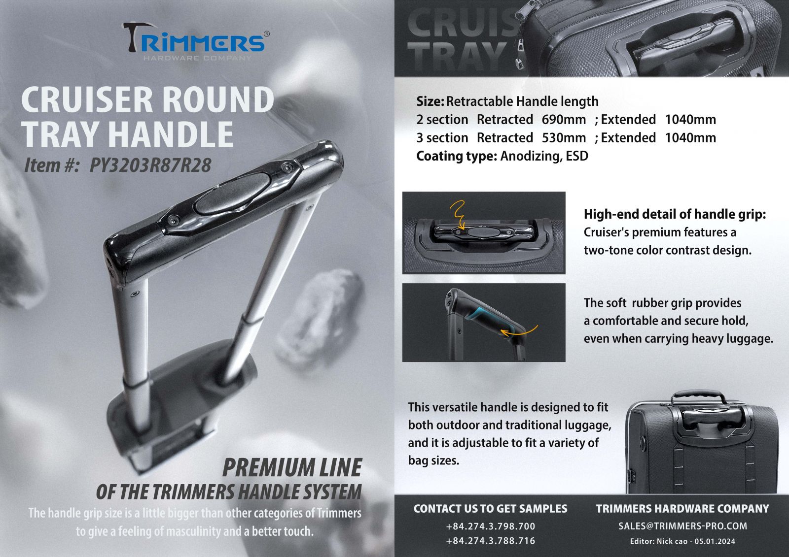 Korean About usCompanyCompany IntroductionCompany ProfileCILocationBusinessBusiness InformationOffice & FactoryCore ValuesOur CustomersStrengthsQuality ControlMaterialDesign & DevelopmentNon-stop Production ProcessIntegrated Structural DesignNewsCompany NewsOversea ShowTrimmers Booth Position OROutdoor Friedrichshafen, DEOutdoor Winter Market 2016Outdoor Friedrichshafen, DEOutdoor Summer Market 2016Trimmers Booth Position OROutdoor Friedrichshafen, DEOutdoor Retailer + Snow ShowISPO Munich Show 2018ISPO Munich Show 20192019 Outdoor Retailer SnowISPO Munich Show Jun,2019Company ActivitiesProduct NewsRetractable HandleBottom Compartment SystemsWheelZipper PullerMetal ComponentPlasticFrameBlogTipsMachineryProductsTravel & GearBottom CompartmentXAD Bottom CompartmentCaliber SeriesEdge Bottom CompartmentMalibu SeriesLocomo SeriesAkita SeriesSuperlite seriesHybrid seriesSantana SeriesHybrid SeriesHJHASDAAll In One SystemsRecessed Spinner Wheel SeriesSpaceShip seriesFeatherLite seriesRetractable HandleAkitaLocomoCruiser seriesCaliber seriesHybrid seriesSpeedLite seriesSuperLite seriesLooperColeIbiza seriesMalibu seriesIce Breaker seriesSolsticeWheelMalibu SeriesAkita SeriesSantana Spinner WheelSpinner Wheel seriesLocomo WheelCruiser seriesCaliber seriesHybrid seriesSuperLite seriesSpeedLite seriesIceBreaker seriesBow TypeLoop seriesTradi seriesSolstice SeriesPlastic ComponentEnd Cap BuckleLadderLockCordLockWebbing TiePower StrapViper Power StrapCamlockPivot HookLoopTriglideD-RingFoot and RailTop / Side HandleProtector & Skid PlateFoot & RailTop HandleLogoLogo PlateSkid Plate & ProtectorProtectorSkid PlateTactical & SafetySide-release BuckleT8_LayerT9_ShieldBags & ApparelsMetal ComponentTension HookShorty Tension HookClip HookSnap HookD-RingTension RingTriglideTension LockToggleLoopWeb ButtonContinental DividerTrekking HolderSternum SliderPull TapCam Tension HookCamlockSR BuckleTent StakeAluminum RulerMetal End TapStructural FrameCarabinerCarabinerCarabinerT3T3 PROBeltBeltZipper PullerZipper PullerMetAstics™AluticaPlasticWeb HandleCamping & OverlandCommute CarrierSnow ShoesChairContactContact InfoHEADGERMANYITALIAKOREAJAPANUKISRAEL About usCompanyCompany IntroductionCompany ProfileCILocationBusinessBusiness InformationOffice & FactoryCore ValuesOur CustomersStrengthsQuality ControlMaterialDesign & DevelopmentNon-stop Production ProcessIntegrated Structural DesignNewsCompany NewsOversea ShowTrimmers Booth Position OROutdoor Friedrichshafen, DEOutdoor Winter Market 2016Outdoor Friedrichshafen, DEOutdoor Summer Market 2016Trimmers Booth Position OROutdoor Friedrichshafen, DEOutdoor Retailer + Snow ShowISPO Munich Show 2018ISPO Munich Show 20192019 Outdoor Retailer SnowISPO Munich Show Jun,2019Company ActivitiesProduct NewsRetractable HandleBottom Compartment SystemsWheelZipper PullerMetal ComponentPlasticFrameBlogTipsMachineryProductsTravel & GearBottom CompartmentXAD Bottom CompartmentCaliber SeriesEdge Bottom CompartmentMalibu SeriesLocomo SeriesAkita SeriesSuperlite seriesHybrid seriesSantana SeriesHybrid SeriesHJHASDAAll In One SystemsRecessed Spinner Wheel SeriesSpaceShip seriesFeatherLite seriesRetractable HandleAkitaLocomoCruiser seriesCaliber seriesHybrid seriesSpeedLite seriesSuperLite seriesLooperColeIbiza seriesMalibu seriesIce Breaker seriesSolsticeWheelMalibu SeriesAkita SeriesSantana Spinner WheelSpinner Wheel seriesLocomo WheelCruiser seriesCaliber seriesHybrid seriesSuperLite seriesSpeedLite seriesIceBreaker seriesBow TypeLoop seriesTradi seriesSolstice SeriesPlastic ComponentEnd Cap BuckleLadderLockCordLockWebbing TiePower StrapViper Power StrapCamlockPivot HookLoopTriglideD-RingFoot and RailTop / Side HandleProtector & Skid PlateFoot & RailTop HandleLogoLogo PlateSkid Plate & ProtectorProtectorSkid PlateTactical & SafetySide-release BuckleT8_LayerT9_ShieldBags & ApparelsMetal ComponentTension HookShorty Tension HookClip HookSnap HookD-RingTension RingTriglideTension LockToggleLoopWeb ButtonContinental DividerTrekking HolderSternum SliderPull TapCam Tension HookCamlockSR BuckleTent StakeAluminum RulerMetal End TapStructural FrameCarabinerCarabinerCarabinerT3T3 PROBeltBeltZipper PullerZipper PullerMetAstics™AluticaPlasticWeb HandleCamping & OverlandCommute CarrierSnow ShoesChairContactContact InfoHEADGERMANYITALIAKOREAJAPANUKISRAEL Company News Oversea ShowTrimmers Booth Position OROutdoor Friedrichshafen, DEOutdoor Winter Market 2016Outdoor Friedrichshafen, DEOutdoor Summer Market 2016Trimmers Booth Position OROutdoor Friedrichshafen, DEOutdoor Retailer + Snow ShowISPO Munich Show 2018ISPO Munich Show 20192019 Outdoor Retailer SnowISPO Munich Show Jun,2019Company Activities Product News Retractable HandleBottom Compartment SystemsWheelZipper PullerMetal ComponentPlasticFrame Blog TipsMachinery Cruiser Round Tray Handle PDF Download Other News Solstice Retractable Handle For Hardshell Item#: PY5903R95W11 Caliber Zero Wide Handle Item#: PY9703L76R66 Ice Breaker Square Tray Handle Item#: PY0303L11R03 Locomo Round Tray Handle Item#: PY6703R60R25 Akita_Ergonomic Handle Grip_3 Section Item#: PY8805R61R50_3 e-Catalogue HARDWARE OF TRAVEL & CAMPING 2024 HARDWARE OF BAGS & APPARELS 2024 METAL & PLASTIC COMPONENT T3 PRO_METAL COMPONENT (*) Required Information (*) Required Information (*) Required Information Download Product Highlights Metal / Plastic / Zip-pull P.7 Metal / Plastic / Zip-pull P.6 Metal / Plastic / Zip-pull P.5 Metal / Plastic / Zip-pull P.4 Metal / Plastic / Zip-pull P.3 Metal / Plastic / Zip-pull P.2 Metal / Plastic / Zip-pull P.1 Handles / Wheels / Hard shell P.3 Handles / Wheels / Hard shell P.2 Handles / Wheels / Hard shell P.1 Frame Flyers