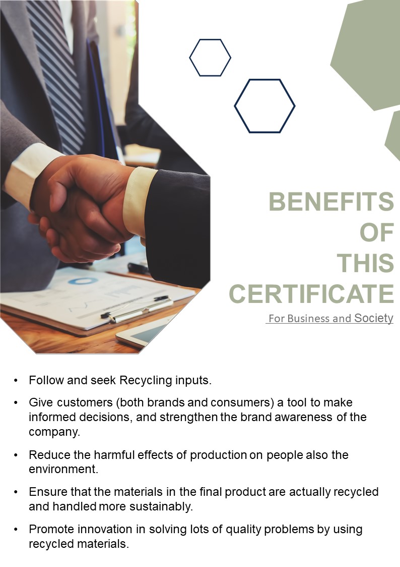 Businesses that get GRS certification stand to benefit greatly in a world in which customers are more motivated to purchase from companies that can demonstrate their environmental credentials. It's one of those certificates that guarantee better peace of mind, both internally and externally, by demonstrating to your coworkers, customers, and other stakeholders that your company is attempting to make the world a better place for future generations.