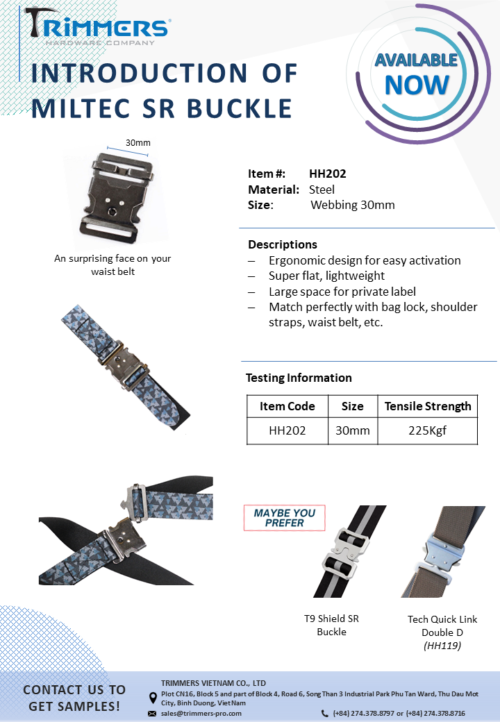 Korean About usCompanyCompany IntroductionCompany ProfileCILocationBusinessBusiness InformationOffice & FactoryCore ValuesOur CustomersStrengthsQuality ControlMaterialDesign & DevelopmentNon-stop Production ProcessIntegrated Structural DesignNewsCompany NewsOversea ShowTrimmers Booth Position OROutdoor Friedrichshafen, DEOutdoor Winter Market 2016Outdoor Friedrichshafen, DEOutdoor Summer Market 2016Trimmers Booth Position OROutdoor Friedrichshafen, DEOutdoor Retailer + Snow ShowISPO Munich Show 2018ISPO Munich Show 20192019 Outdoor Retailer SnowISPO Munich Show Jun,2019Company ActivitiesProduct NewsRetractable HandleBottom Compartment SystemsWheelZipper PullerMetal ComponentPlasticFrameBlogTipsMachineryProductsTravel & GearBottom CompartmentXAD Bottom CompartmentCaliber SeriesEdge Bottom CompartmentMalibu SeriesLocomo SeriesAkita SeriesSuperlite seriesHybrid seriesSantana SeriesHybrid SeriesHJHASDAAll In One SystemsRecessed Spinner Wheel SeriesSpaceShip seriesFeatherLite seriesRetractable HandleAkitaLocomoCruiser seriesCaliber seriesHybrid seriesSpeedLite seriesSuperLite seriesLooperColeIbiza seriesMalibu seriesIce Breaker seriesSolsticeWheelMalibu SeriesAkita SeriesSantana Spinner WheelSpinner Wheel seriesLocomo WheelCruiser seriesCaliber seriesHybrid seriesSuperLite seriesSpeedLite seriesIceBreaker seriesBow TypeLoop seriesTradi seriesSolstice SeriesPlastic ComponentEnd Cap BuckleLadderLockCordLockWebbing TiePower StrapViper Power StrapCamlockPivot HookLoopTriglideD-RingFoot and RailTop / Side HandleProtector & Skid PlateFoot & RailTop HandleLogoLogo PlateSkid Plate & ProtectorProtectorSkid PlateTactical & SafetySide-release BuckleT8_LayerT9_ShieldBags & ApparelsMetal ComponentTension HookShorty Tension HookClip HookSnap HookD-RingTension RingTriglideTension LockToggleLoopWeb ButtonContinental DividerTrekking HolderSternum SliderPull TapCam Tension HookCamlockSR BuckleTent StakeAluminum RulerMetal End TapStructural FrameCarabinerCarabinerCarabinerT3T3 PROBeltBeltZipper PullerZipper PullerMetAstics™AluticaPlasticWeb HandleCamping & OverlandCommute CarrierSnow ShoesChairContactContact InfoHEADGERMANYITALIAKOREAJAPANUKISRAEL About usCompanyCompany IntroductionCompany ProfileCILocationBusinessBusiness InformationOffice & FactoryCore ValuesOur CustomersStrengthsQuality ControlMaterialDesign & DevelopmentNon-stop Production ProcessIntegrated Structural DesignNewsCompany NewsOversea ShowTrimmers Booth Position OROutdoor Friedrichshafen, DEOutdoor Winter Market 2016Outdoor Friedrichshafen, DEOutdoor Summer Market 2016Trimmers Booth Position OROutdoor Friedrichshafen, DEOutdoor Retailer + Snow ShowISPO Munich Show 2018ISPO Munich Show 20192019 Outdoor Retailer SnowISPO Munich Show Jun,2019Company ActivitiesProduct NewsRetractable HandleBottom Compartment SystemsWheelZipper PullerMetal ComponentPlasticFrameBlogTipsMachineryProductsTravel & GearBottom CompartmentXAD Bottom CompartmentCaliber SeriesEdge Bottom CompartmentMalibu SeriesLocomo SeriesAkita SeriesSuperlite seriesHybrid seriesSantana SeriesHybrid SeriesHJHASDAAll In One SystemsRecessed Spinner Wheel SeriesSpaceShip seriesFeatherLite seriesRetractable HandleAkitaLocomoCruiser seriesCaliber seriesHybrid seriesSpeedLite seriesSuperLite seriesLooperColeIbiza seriesMalibu seriesIce Breaker seriesSolsticeWheelMalibu SeriesAkita SeriesSantana Spinner WheelSpinner Wheel seriesLocomo WheelCruiser seriesCaliber seriesHybrid seriesSuperLite seriesSpeedLite seriesIceBreaker seriesBow TypeLoop seriesTradi seriesSolstice SeriesPlastic ComponentEnd Cap BuckleLadderLockCordLockWebbing TiePower StrapViper Power StrapCamlockPivot HookLoopTriglideD-RingFoot and RailTop / Side HandleProtector & Skid PlateFoot & RailTop HandleLogoLogo PlateSkid Plate & ProtectorProtectorSkid PlateTactical & SafetySide-release BuckleT8_LayerT9_ShieldBags & ApparelsMetal ComponentTension HookShorty Tension HookClip HookSnap HookD-RingTension RingTriglideTension LockToggleLoopWeb ButtonContinental DividerTrekking HolderSternum SliderPull TapCam Tension HookCamlockSR BuckleTent StakeAluminum RulerMetal End TapStructural FrameCarabinerCarabinerCarabinerT3T3 PROBeltBeltZipper PullerZipper PullerMetAstics™AluticaPlasticWeb HandleCamping & OverlandCommute CarrierSnow ShoesChairContactContact InfoHEADGERMANYITALIAKOREAJAPANUKISRAEL Company News Oversea ShowTrimmers Booth Position OROutdoor Friedrichshafen, DEOutdoor Winter Market 2016Outdoor Friedrichshafen, DEOutdoor Summer Market 2016Trimmers Booth Position OROutdoor Friedrichshafen, DEOutdoor Retailer + Snow ShowISPO Munich Show 2018ISPO Munich Show 20192019 Outdoor Retailer SnowISPO Munich Show Jun,2019Company Activities Product News Retractable HandleBottom Compartment SystemsWheelZipper PullerMetal ComponentPlasticFrame Blog TipsMachinery Miltec SR Buckle PDF Download Other News Alutica Tilt Head: Bottle Opener Tension Lock (HH164) & Bottle Opener D-Ring (HH146) Item#: HH164 & HH146 T3 PRO_Loop Item#: HH235 T3 PRO D-ring (HH226) & T3 PRO Double D-ring (HH227) Item#: HH226 & HH227 T3 PRO (Shorty) Tension Hook Item#: HH228 & HH229 T3 PRO_Triglide Item#: HH321 T3 PRO_Webbing Toggle Item#: HH244 e-Catalogue HARDWARE OF TRAVEL & CAMPING 2024 HARDWARE OF BAGS & APPARELS 2024 METAL & PLASTIC COMPONENT T3 PRO_METAL COMPONENT (*) Required Information (*) Required Information (*) Required Information Download Product Highlights Metal / Plastic / Zip-pull P.7 Metal / Plastic / Zip-pull P.6 Metal / Plastic / Zip-pull P.5 Metal / Plastic / Zip-pull P.4 Metal / Plastic / Zip-pull P.3 Metal / Plastic / Zip-pull P.2 Metal / Plastic / Zip-pull P.1 Handles / Wheels / Hard shell P.3 Handles / Wheels / Hard shell P.2 Handles / Wheels / Hard shell P.1 Frame Flyers