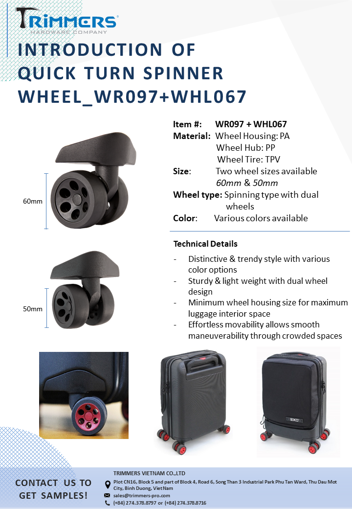 Korean About usCompanyCompany IntroductionCompany ProfileCILocationBusinessBusiness InformationOffice & FactoryCore ValuesOur CustomersStrengthsQuality ControlMaterialDesign & DevelopmentNon-stop Production ProcessIntegrated Structural DesignNewsCompany NewsOversea ShowTrimmers Booth Position OROutdoor Friedrichshafen, DEOutdoor Winter Market 2016Outdoor Friedrichshafen, DEOutdoor Summer Market 2016Trimmers Booth Position OROutdoor Friedrichshafen, DEOutdoor Retailer + Snow ShowISPO Munich Show 2018ISPO Munich Show 20192019 Outdoor Retailer SnowISPO Munich Show Jun,2019Company ActivitiesProduct NewsRetractable HandleBottom Compartment SystemsWheelZipper PullerMetal ComponentPlasticFrameBlogTipsMachineryProductsTravel & GearBottom CompartmentXAD Bottom CompartmentCaliber SeriesEdge Bottom CompartmentMalibu SeriesLocomo SeriesAkita SeriesSuperlite seriesHybrid seriesSantana SeriesHybrid SeriesHJHASDAAll In One SystemsRecessed Spinner Wheel SeriesSpaceShip seriesFeatherLite seriesRetractable HandleAkitaLocomoCruiser seriesCaliber seriesHybrid seriesSpeedLite seriesSuperLite seriesLooperColeIbiza seriesMalibu seriesIce Breaker seriesSolsticeWheelMalibu SeriesAkita SeriesSantana Spinner WheelSpinner Wheel seriesLocomo WheelCruiser seriesCaliber seriesHybrid seriesSuperLite seriesSpeedLite seriesIceBreaker seriesBow TypeLoop seriesTradi seriesSolstice SeriesPlastic ComponentEnd Cap BuckleLadderLockCordLockWebbing TiePower StrapViper Power StrapCamlockPivot HookLoopTriglideD-RingFoot and RailTop / Side HandleProtector & Skid PlateFoot & RailTop HandleLogoLogo PlateSkid Plate & ProtectorProtectorSkid PlateTactical & SafetySide-release BuckleT8_LayerT9_ShieldBags & ApparelsMetal ComponentTension HookShorty Tension HookClip HookSnap HookD-RingTension RingTriglideTension LockToggleLoopWeb ButtonContinental DividerTrekking HolderSternum SliderPull TapCam Tension HookCamlockSR BuckleTent StakeAluminum RulerMetal End TapStructural FrameCarabinerCarabinerCarabinerT3T3 PROBeltBeltZipper PullerZipper PullerMetAstics™AluticaPlasticWeb HandleCamping & OverlandCommute CarrierSnow ShoesChairContactContact InfoHEADGERMANYITALIAKOREAJAPANUKISRAEL About usCompanyCompany IntroductionCompany ProfileCILocationBusinessBusiness InformationOffice & FactoryCore ValuesOur CustomersStrengthsQuality ControlMaterialDesign & DevelopmentNon-stop Production ProcessIntegrated Structural DesignNewsCompany NewsOversea ShowTrimmers Booth Position OROutdoor Friedrichshafen, DEOutdoor Winter Market 2016Outdoor Friedrichshafen, DEOutdoor Summer Market 2016Trimmers Booth Position OROutdoor Friedrichshafen, DEOutdoor Retailer + Snow ShowISPO Munich Show 2018ISPO Munich Show 20192019 Outdoor Retailer SnowISPO Munich Show Jun,2019Company ActivitiesProduct NewsRetractable HandleBottom Compartment SystemsWheelZipper PullerMetal ComponentPlasticFrameBlogTipsMachineryProductsTravel & GearBottom CompartmentXAD Bottom CompartmentCaliber SeriesEdge Bottom CompartmentMalibu SeriesLocomo SeriesAkita SeriesSuperlite seriesHybrid seriesSantana SeriesHybrid SeriesHJHASDAAll In One SystemsRecessed Spinner Wheel SeriesSpaceShip seriesFeatherLite seriesRetractable HandleAkitaLocomoCruiser seriesCaliber seriesHybrid seriesSpeedLite seriesSuperLite seriesLooperColeIbiza seriesMalibu seriesIce Breaker seriesSolsticeWheelMalibu SeriesAkita SeriesSantana Spinner WheelSpinner Wheel seriesLocomo WheelCruiser seriesCaliber seriesHybrid seriesSuperLite seriesSpeedLite seriesIceBreaker seriesBow TypeLoop seriesTradi seriesSolstice SeriesPlastic ComponentEnd Cap BuckleLadderLockCordLockWebbing TiePower StrapViper Power StrapCamlockPivot HookLoopTriglideD-RingFoot and RailTop / Side HandleProtector & Skid PlateFoot & RailTop HandleLogoLogo PlateSkid Plate & ProtectorProtectorSkid PlateTactical & SafetySide-release BuckleT8_LayerT9_ShieldBags & ApparelsMetal ComponentTension HookShorty Tension HookClip HookSnap HookD-RingTension RingTriglideTension LockToggleLoopWeb ButtonContinental DividerTrekking HolderSternum SliderPull TapCam Tension HookCamlockSR BuckleTent StakeAluminum RulerMetal End TapStructural FrameCarabinerCarabinerCarabinerT3T3 PROBeltBeltZipper PullerZipper PullerMetAstics™AluticaPlasticWeb HandleCamping & OverlandCommute CarrierSnow ShoesChairContactContact InfoHEADGERMANYITALIAKOREAJAPANUKISRAEL Company News Oversea ShowTrimmers Booth Position OROutdoor Friedrichshafen, DEOutdoor Winter Market 2016Outdoor Friedrichshafen, DEOutdoor Summer Market 2016Trimmers Booth Position OROutdoor Friedrichshafen, DEOutdoor Retailer + Snow ShowISPO Munich Show 2018ISPO Munich Show 20192019 Outdoor Retailer SnowISPO Munich Show Jun,2019Company Activities Product News Retractable HandleBottom Compartment SystemsWheelZipper PullerMetal ComponentPlasticFrame Blog TipsMachinery Quick Turn Wide Spinner Wheel PDF Download Other News Santana Spinner: Hairline Double Wheel 50 (WR079 + WHL058_4) & Cut Rim Double Wheel 50 (WR079 + WHL058_1) Item#: WR079 + WHL058_4 & WR079 + WHL058_1 New Santana Spinner Wheel Item#: WR111+WHL058 Solstice Spinner Hairline Cap Double Wheel 50 Item#: WR099 + WHL058 New Hyper Elastic Spinner Double Wheel 58 Item#: WR097 + WHL077 Malibu Wheel Item#: WR063 + WHL032 Santana Spinner Wheel Hyper Elastic Double Wheel 58 for Hardshell Item#: WR061 + WHL077 e-Catalogue HARDWARE OF TRAVEL & CAMPING 2024 HARDWARE OF BAGS & APPARELS 2024 METAL & PLASTIC COMPONENT T3 PRO_METAL COMPONENT (*) Required Information (*) Required Information (*) Required Information Download Product Highlights Metal / Plastic / Zip-pull P.7 Metal / Plastic / Zip-pull P.6 Metal / Plastic / Zip-pull P.5 Metal / Plastic / Zip-pull P.4 Metal / Plastic / Zip-pull P.3 Metal / Plastic / Zip-pull P.2 Metal / Plastic / Zip-pull P.1 Handles / Wheels / Hard shell P.3 Handles / Wheels / Hard shell P.2 Handles / Wheels / Hard shell P.1 Frame Flyers