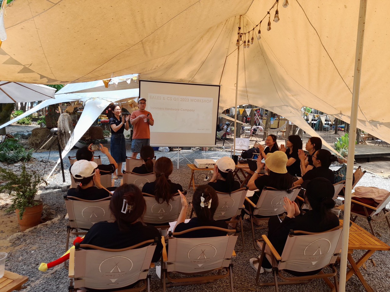 On March 24th-25th 2023, the Sales and CS (Customer Service) department had a workshop program in combination with camping in the Tri An Lake area to develop and research development strategies, search for potential customers, and enhance customer service activities in 2023.