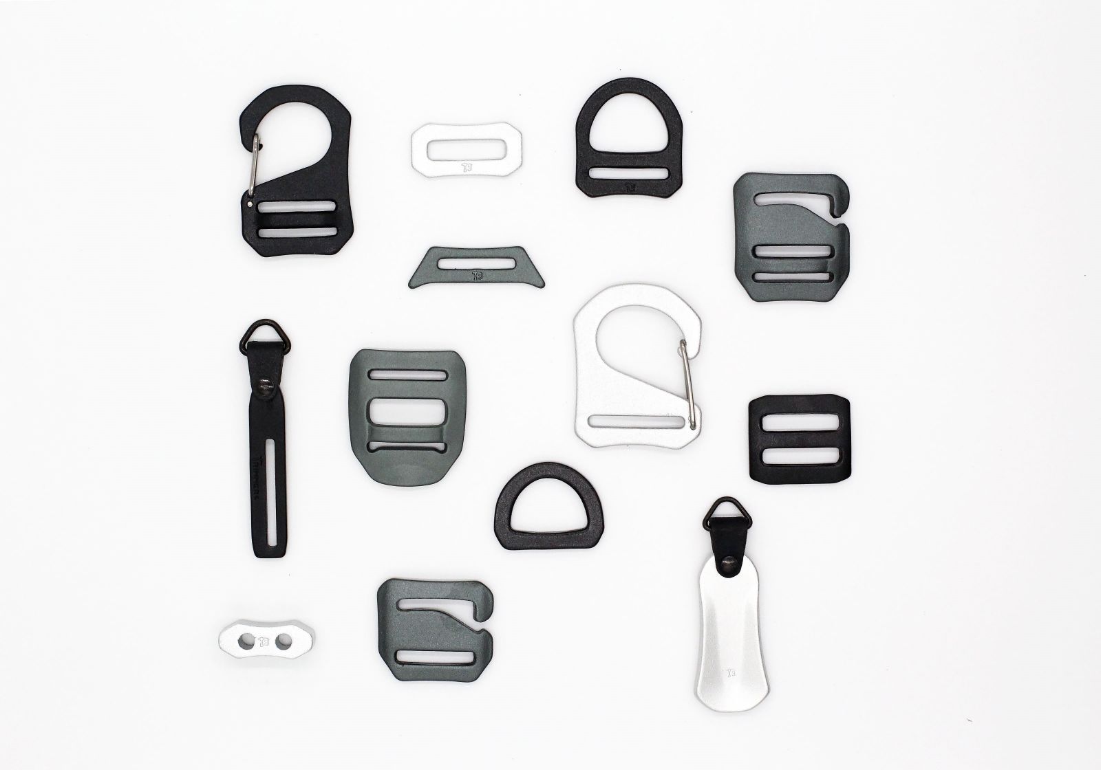 In our T3 colleciton, it includes loops, tension hooks, zipper pullers, D-rings, toggles, clip hooks, and tension locks.